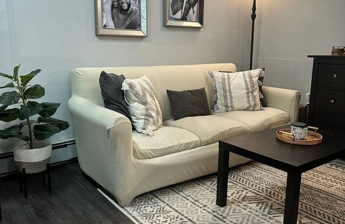 Fully furnished ample studio apartment, located in the bsmt of a luxury brick townhouse. Separate entrance , high ceiling recently decorated Equipped with a split 12000 btu AC split unit. Desk, couch and more.