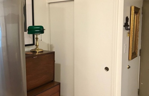 Welcome to this charming studio in New York City, perfect for discovering the city like a native — perfect for a longer stay of 30 days or more. The fully furnished, ground-floor studio has its own entrance in a private home located in a Historic Landmarked neighborhood of Inwood, upper Manhattan. FREE WIFI, UTILITIES and en-suite WASHER/DRIER INCLUDED. Guests can enjoy the heating and AC for a comfortable stay. This adorable space features 1 queen bed with linens, a fully equipped kitchen, a spa like bathroom with shower, plush towels, and toiletries. A desk and office chair, if you need to work. The place is a quiet oasis from downtown, but quickly accessible to everything in Manhattan — Broadway theater, museums, galleries, Lincoln Center and the Opera, Times Square, the Statue of Liberty, and all the excitement New York City offers.
