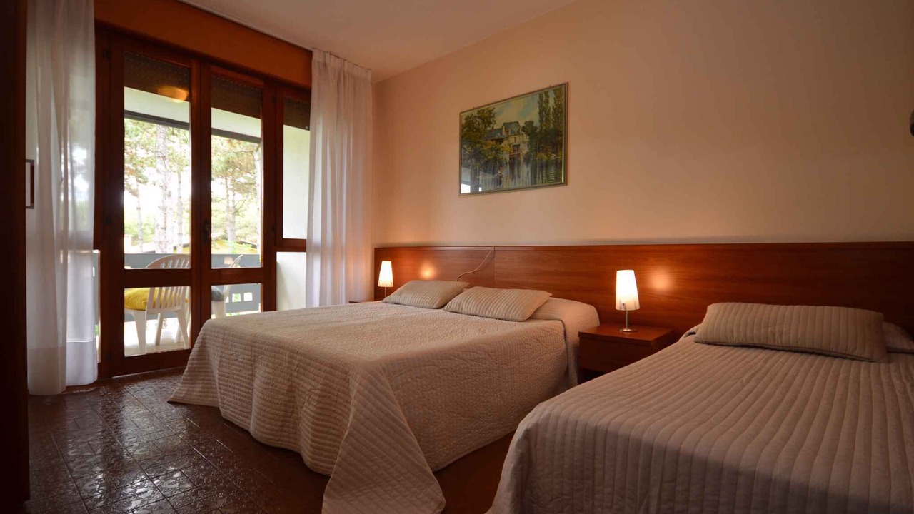 The holiday apartment is located in an apartment house. Also due to its quiet location the domicile is popular.LocationBibione, district Lido del Sole. The landlord does not live in the house or on the property. Parking is available on the property. Specialair conditioning.For your safety, the accommodation is equipped with CO2 detector and fire extinguisher. Dogsallowed, EUR 40.00/pet per stay. DistancesShopping 200 m, restaurant 200 m, town center 250 m. thermal bath in Bibione 1000 m. In summer: Adriatic Sea (beach 400 m in Bibione featuring sand). DivisionHoliday apartment, 2 floors, 4 rooms (including 3 bedrooms), 65 sqm, in total 9 beds (including 2 additional beds). RoomGround floor: Living room with 2 additional beds on couch/sofa, TV and access to the balcony. Cooking nook in the living room with gas stove, fridge (icebox), microwave and coffee machine. 1st floor: 2 bedrooms each with 2 single beds. Bedroom with 1 double bed and 1 single bed. Bathroom with shower and WC. Terms of lease and pricesIncluded in the priceair conditioning, parking place, electricity, gas, water, heating, final cleaning, beach service (1 sunlounger, 1 chair, 1 parasol). Side costs-Costs on the spot:/Obligatory:final cleaning of the kitchen to be carried out individually. local tax by local tariff (if charged).On request:bed linen 11 € per person per first time use and changing. hand towels 10 € per person per first time use and changing. baby cot – please order at booking 5 € per bed per day. high chair - please order at booking 3 € per piece per day. buggy 3 € per piece per day.Deposit:EUR 150,-/object