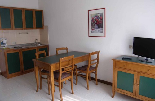 The holiday apartment is located in an apartment house and is furnished in a functional and typical country style. The property is located in a residence. Also due to its sunny location the domicile is popular. Available for use: terrace and lift.Holiday resort24 accommodations, reception, bar, internet (WLAN) and TV room. LocationGarda. The holiday apartement is located in a residence, on a enclosed plot, bordered by a fence. The residence is just 10 minutes' walk from the shores of Lake Garda. Access is via a path (asphalted). Parking (for 1 car) is available on the property. Specialair conditioning, central heating. Use of the air conditioning is available upon request when booking for a fee on site. The air conditioning can only be used from approximately July 1st to August 31st.Facilities: internet access (WLAN) and phone. TV reception takes place via satellite. The accommodation is set up suitable for the disabled. PoolAll pools are available for shared use. Outdoor pool (4 m x 8 m). The pool area is on the roof. Dogsnot allowed. DistancesShopping 300 m, restaurant 100 m, town center 300 m. Garda: bank 100 m, doctor 110 m, thermal bath 1300 m and pharmacy 400 m. railway station in Peschiera del Garda 17,2 km. airport in Verona Valerio Catullo 34,1 km. 3.5 km from the Baia delle Sirene Park In summer: Lake Garda 500 m in Garda (beach 600 m in Garda featuring gravel and stones). Garda: tennis 1300 m, golf 3 km and mini golf 3,8 km. DivisionHoliday apartment, 1 floor, 2 rooms (including 1 bedroom), 45 sqm, in total 5 beds (including 3 additional beds), on request additionally 1 child up to 2 years in a baby cot. RoomThe entrance to your holiday apartment leads directly into the living & bedroom. Bedroom with 1 double bed, 1 baby cot and Instead of the double bed, there could be two single beds. Living/bedroom with 3 additional beds on couch/sofa, TV, dining area (5 seats), access to the balcony and safe. Cooking nook in the living & bedroom with gas stove, fridge, coffee machine and instead of a coffee maker there could also be a kettle. Oven on request when booking. Bathroom with shower, 1 washbasin, WC and hairdryer. Credit cardsVisa, MasterCard. Terms of lease and pricesIncluded in the priceOutdoor pool, internet access, parking place, electricity, gas, water, heating, pool, bed linen (first usage), baby cot – please order at booking, hand towels (first usage), Wireless Internet access. Side costs-Costs on the spot:/Obligatory:final cleaning of the kitchen to be carried out individually. final cleaning (if not performed by the tenant) 50 € per object per stay. local tax by local tariff (if charged).On request:garage 6 € per car per day. safe 15 € per object per stay. bed linen 10 € per person per change. hand towels 10 € per person per change. cleaning (daily) 50 € per object per week. Air conditioning - please order at booking 60 € per object per week (01.07.25-31.08.25).Deposit:EUR 100,-/object