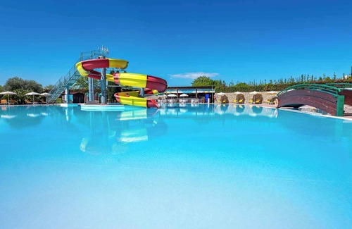 2 stars, reception, 1 restaurant, bar, pool bar, supermarket and kiosk. All common rooms are air-conditioned. The following credit cards are accepted from a minimum amount of €50.00: VISA, EUROCARD, MASTERCARD, MAESTRO; Traveller's checks and Euro checks are not accepted. LocationPeschiera del Garda. The holiday apartement is located in a residence, on a 800000 sqm enclosed garden plot with meadow, flowers, shrubs and trees. In the same residence are the holiday flats GAR PES 007 (2 persons) and GAR PES 008 (4 persons). The apartments are located in 4 blocks on 2 floors - Camelie, Phoenix, Magnolia and Limoni, which are located together with the Parc Hotel **** (GAR PES 906) in Il Paradiso Golf Resort. Peschiera del Garda is located on the southern shores of Lake Garda in the province of Verona. Its location on the river Mincio - the only outflow of Lake Garda - which makes this place unique and special. The old town, which is completely encircled by canals, is an ideal starting point for a shopping tour. Access is via a side road. Parking is available on the property. Parking spot; Underground car park at the Parc Hotel and secure bicycle storage at the Active Hotels Paradiso & Golf, both subject to availability. The management assumes no responsibility for items left in the car, damage to the car or car theft. Specialair conditioning, central heating. Air conditioning (from mid-June to approximately mid-September). Included in the price. TV reception takes place via satellite.For your safety, the accommodation is equipped with CO2 detector and fire extinguisher. PoolAll pools are available for shared use. Outdoor pool (15 m x 75 m, depth 1,40 m). Except for the pools at the Parc Hotel: Pool Laguna (approx. 1,112 mq.; 0.50-> 1.40 m.; approx. 9:00 am-7:00pm) with a new water slide, sun loungers and umbrellas for free use depending on Availability. Free WiFi at the “Laguna” pool. Wellness center for a fee and indoor pool at the Parc Hotel. LeisureAnimation for children. Adult animation. from 14/04/25 to 31/05/25 + from 01/09/25 to 15/09/25: "light" animation (light animation for children and adults; live music)
