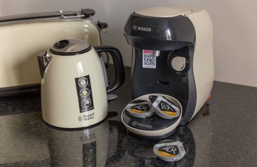 Prepare a home-cooked meal in the kitchen, complete with a stovetop, a refrigerator, and a dishwasher, as well as a coffee maker, an electric kettle, and a microwave. Bathroom amenities include a hair dryer, towels, and toilet paper. And you won't have to pack extra clothes, because you'll have a washer and dryer, too. Other amenities include bed sheets, a desk, an ironing board, and heating.