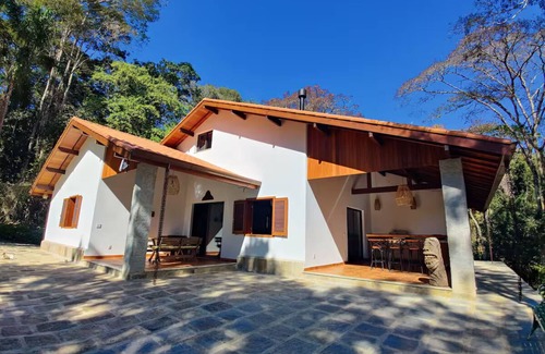 Site in a peaceful, quiet location, surrounded by lush nature. Located in Teresópolis-RJ, the recently renovated house has both a rustic feel and the comfort of a place with a fireplace, beautiful mezzanine, barbecue, and swimming pool to spend time with family and friends. A place to rest, meditate, walk, discover, dream... Those who go will never forget it!