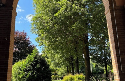 Relax in the garden (enjoy the outdoor furniture!) of this 807-sq-ft apartment. For a change of scenery, come inside and enjoy the free WiFi and TV.
