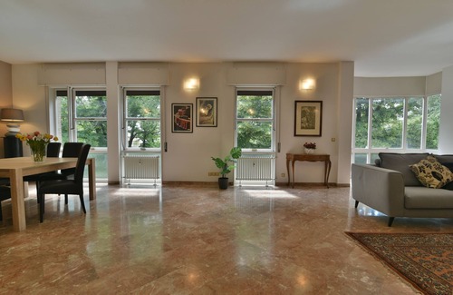 This is an elegant, spacious 140mq apartment with a beautiful and bright 60mq living room overlooking the trees in the avenue.