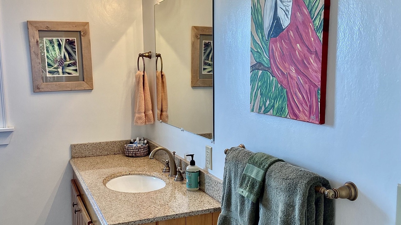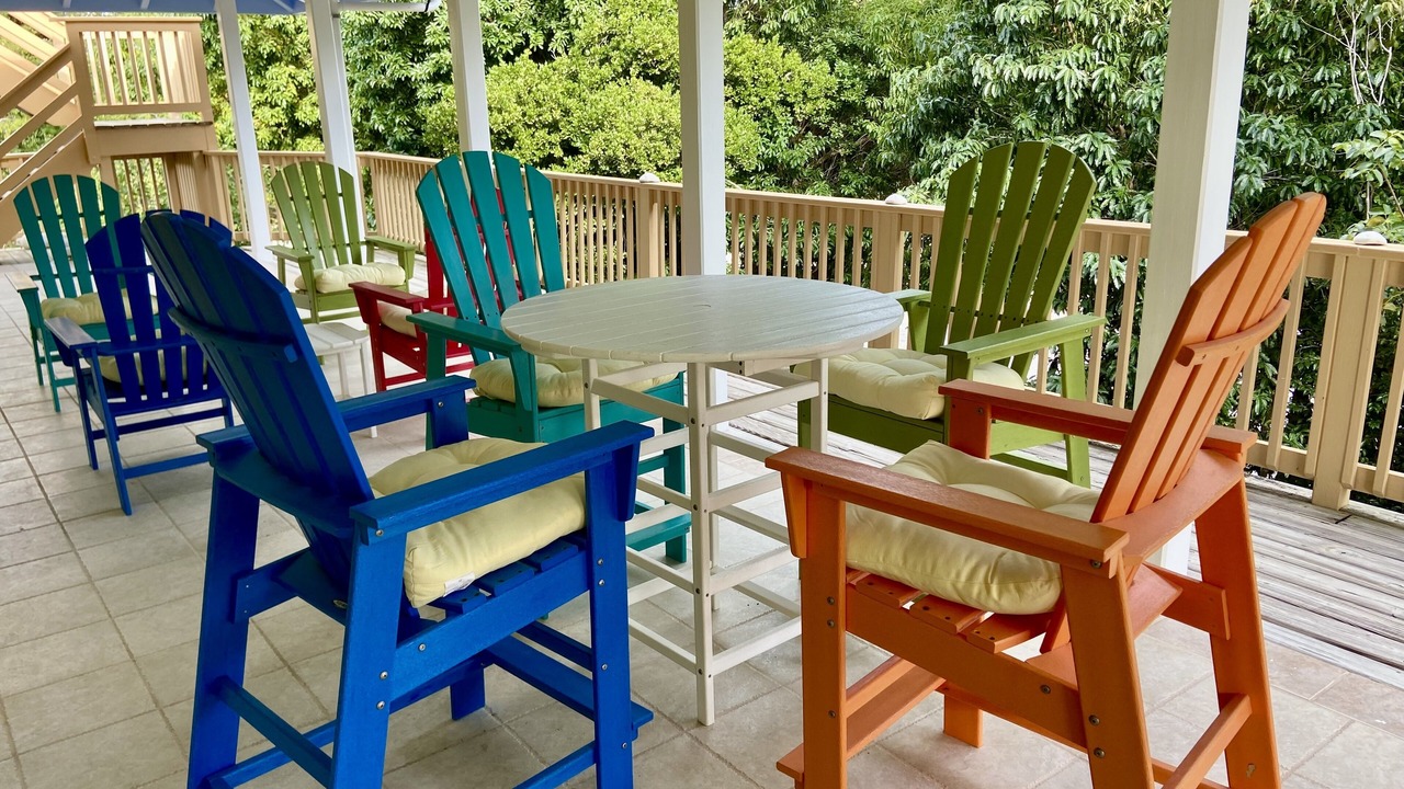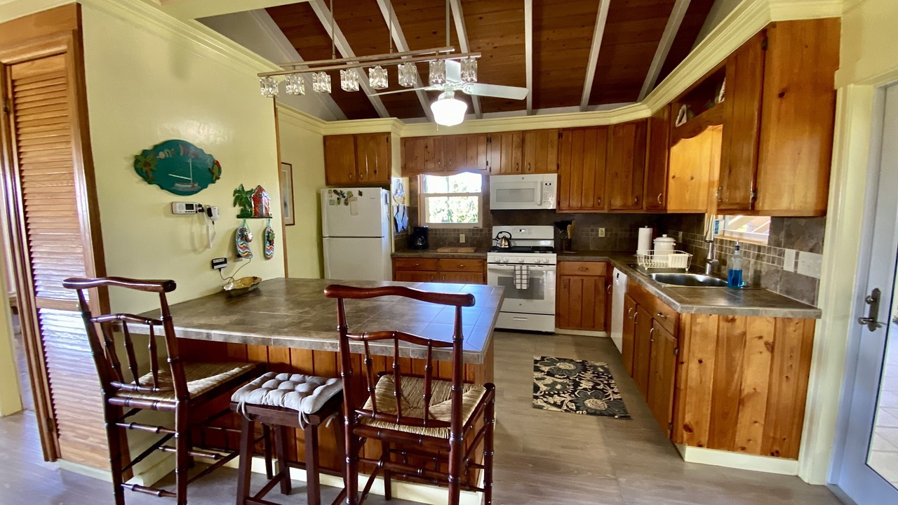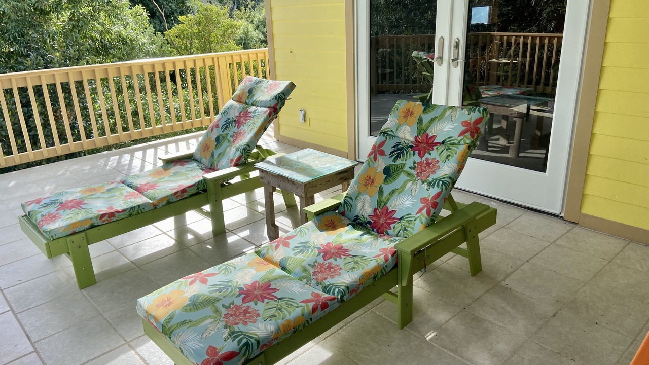 Two air-conditioned separate units. 'Top Banana' is a spacious 2- bedroom , 2 -bath home. (1, 130 sq. ft. of air-conditioned space; 570 sq ft. of covered, furnished deck.) Fully equipped gourmet kitchen with quality cookware, sharp knives, utensils and kitchen accessories. Outdoor cooking on a gas grill. Open great room and dining area. Large breezy covered deck and an open lookout deck.