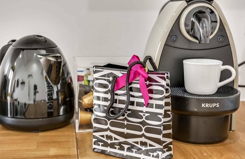 Blending antique and modern notes, our local interior designer has brought the timeless spirit of Paris inside your door in the Aboukir II Sweett studio apartment. Prominent windows and elegant textiles fill the space with old-world glamour, while funky decorative accents add a modern touch. A fully equipped kitchenette has everything you need for in-house dining.