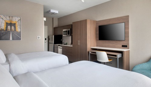 TownePlace Suites by Marriott New York Brooklyn offers 112 accommodations with coffee/tea makers and hair dryers. Accommodations offer separate sitting areas and include kitchen islands. Beds feature down comforters. 50-inch LED televisions come with premium digital channels, pay movies, and Netflix. Accommodations at this 3-star hotel have kitchenettes with full-sized refrigerators/freezers, stovetops, microwaves, and separate dining areas. Bathrooms include showers and complimentary toiletries.