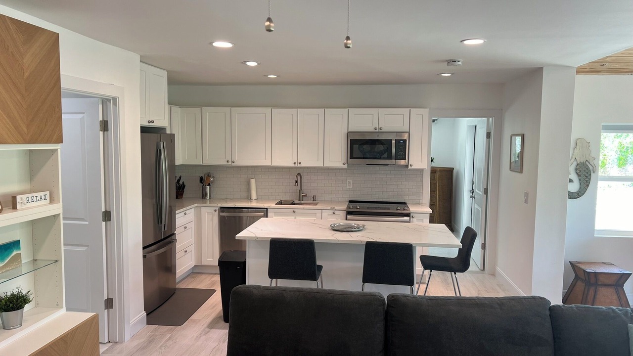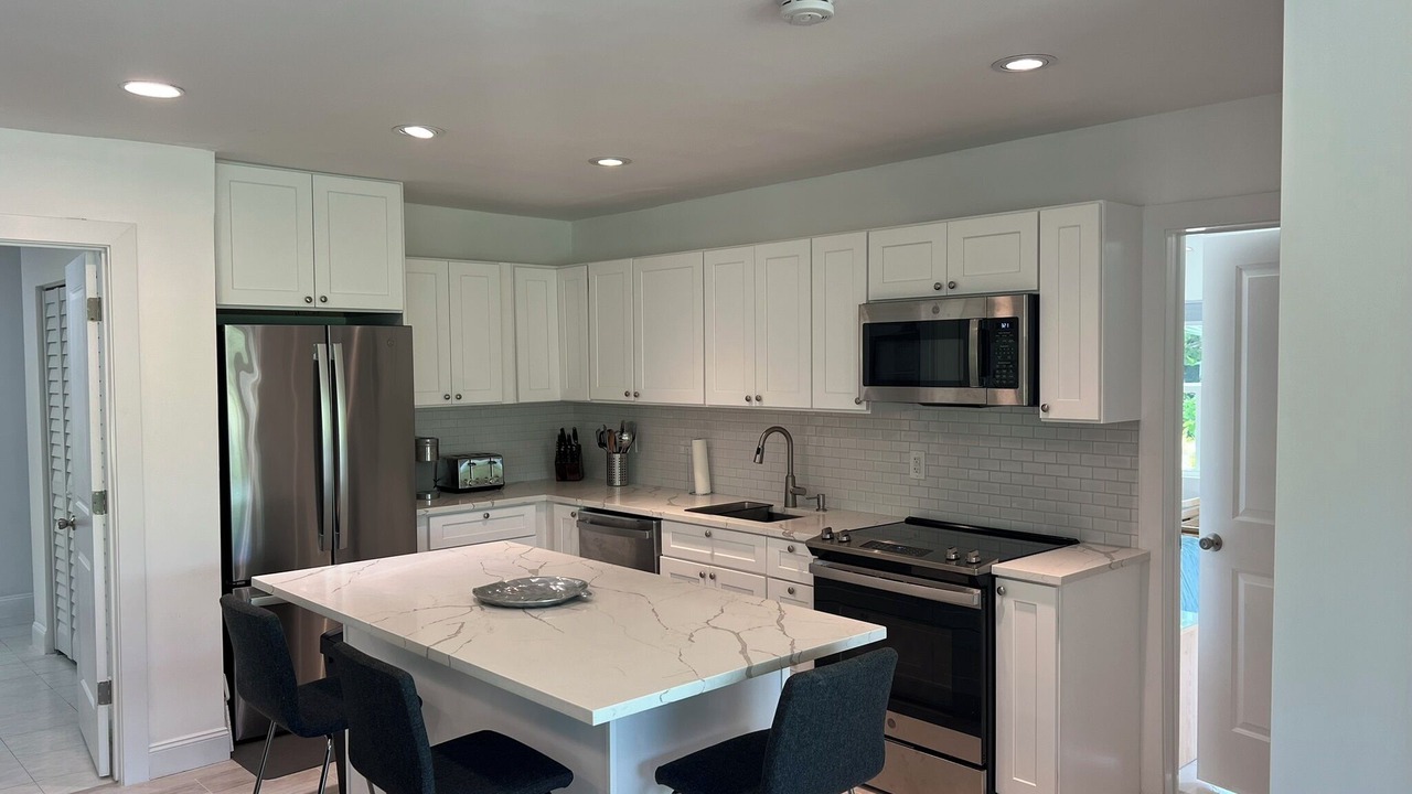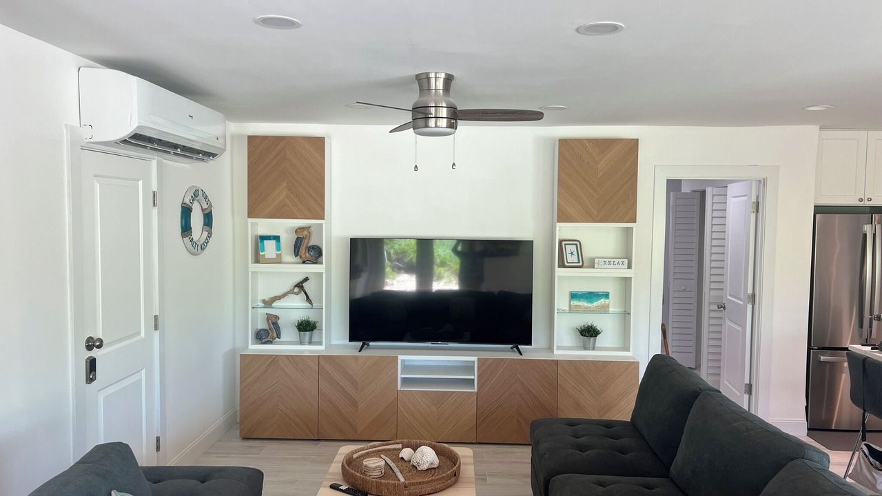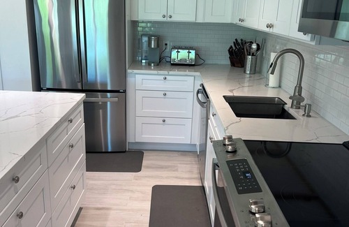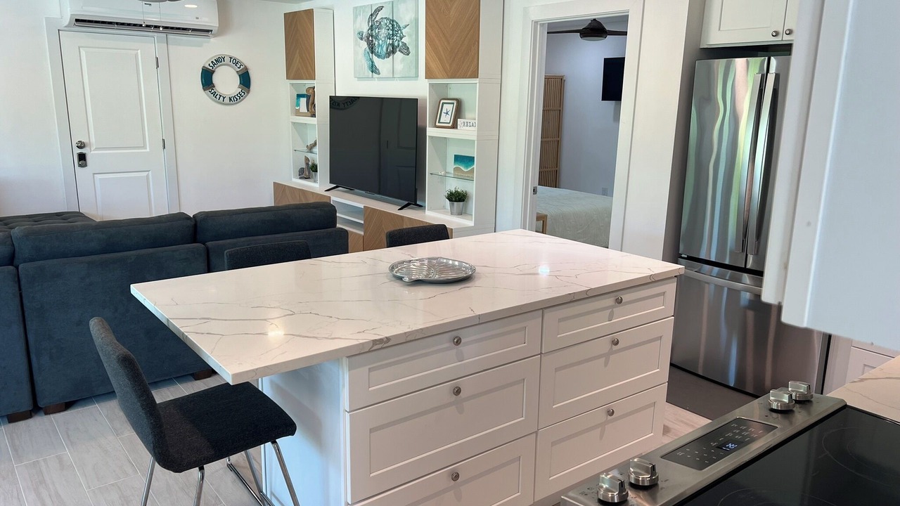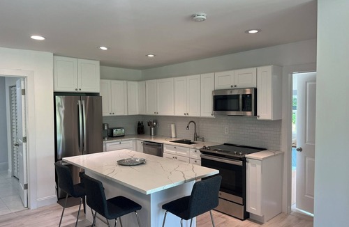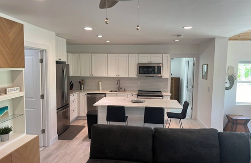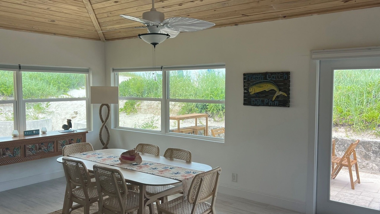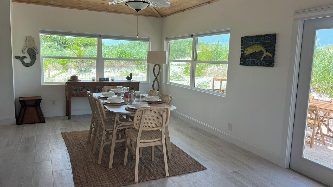 Stay comfortably in Treasure Cay at this 2-BR/2 BA, beachfront villa, with a beautiful, extended eating area. This newly renovated villa has two bedrooms featuring a soothing king bed and a welcoming queen bed, perfect for a good night's sleep. Enjoy the gorgeous surroundings and modern amenities like AC, WIFI, dishwasher, outdoor washing machine w/ dryer. Both bathrooms are equipped with showers. Guests will feel right at home. Enjoy the Beach Villa Amenities such as community pool, lounge chairs on the pool deck and the beach with Palapas! !You're sure to make fantastic memories with a stay at our place. Another villa is located just next door and is also available to rent in order to accommodate more guests at an additional rental fee.