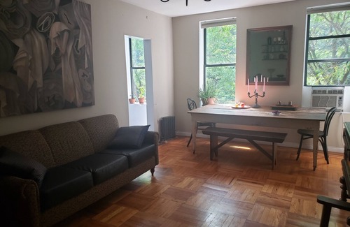 This fabulous place is perfect for group trips. Spacious apartment in Inwood, Manhattan. Facing Fort Tryon Park (The Met Cloisters), two blocks from the A Train. 10 min ride to Columbia University, 20 min - and you are in Midtown.